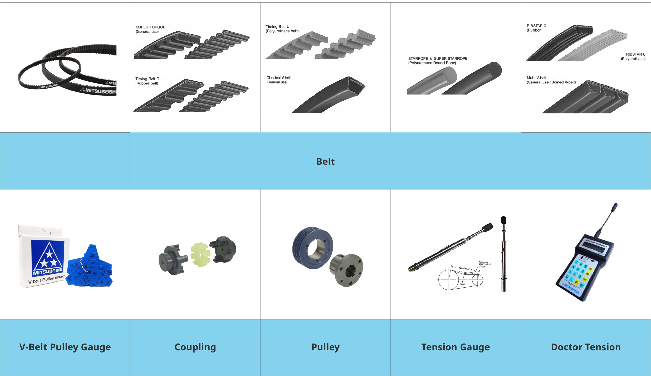 Mitsuboshi เป็นบริษัทที่เปิดมาตั้งแต่ปี 1919 โดยผลิตสายพานหลากหลายชนิดและอุปกรณ์ที่เกี่ยวข้อง สายพานและอุปกรณ์ต่างๆ เหล่านี้ผลิตได้มาตรฐานใช้งานได้ยาวนานมากกว่าสายพานทั่วๆ ไป มีคุณสมบัติที่พิเศษ ทนทาน เป็นที่ยอมรับจากลูกค้า สามารถติดต่อสอบถามเซลเพื่อขอข้อมูลเพิ่มเติมได้